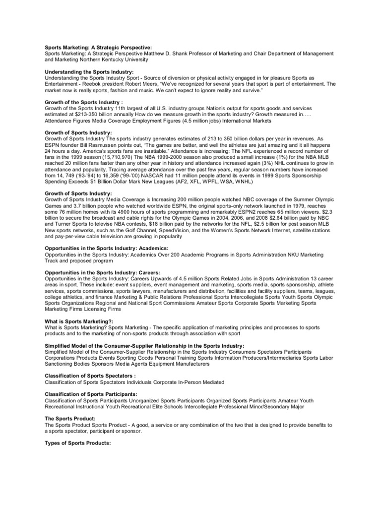 Com 319 business and professional communication. With just two additional courses added to your coursework, sport managment majors can double major in marketing. Curriculums might include some instruction in how to plan and develop top sports programs, and could cover financial management principles, sales, marketing and recruitment. Sports management professionals work as team managers, athletic directors, sports agents and recruiters, marketing and pr professionals, and more. Sports marketing is a subdivision of marketing which focuses both on the promotion of sports events and teams as well as the promotion of other products and services through sporting events and.